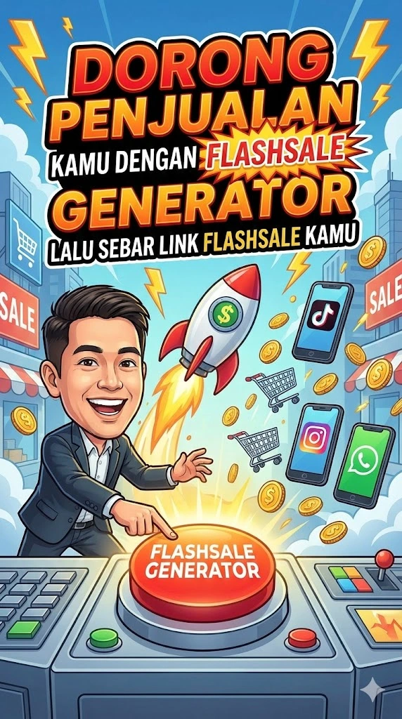 Launch an automated flash sale landing page featuring countdown timers, dynamic smartphone previews, and seamless WhatsApp or Marketplace integration for more sales.