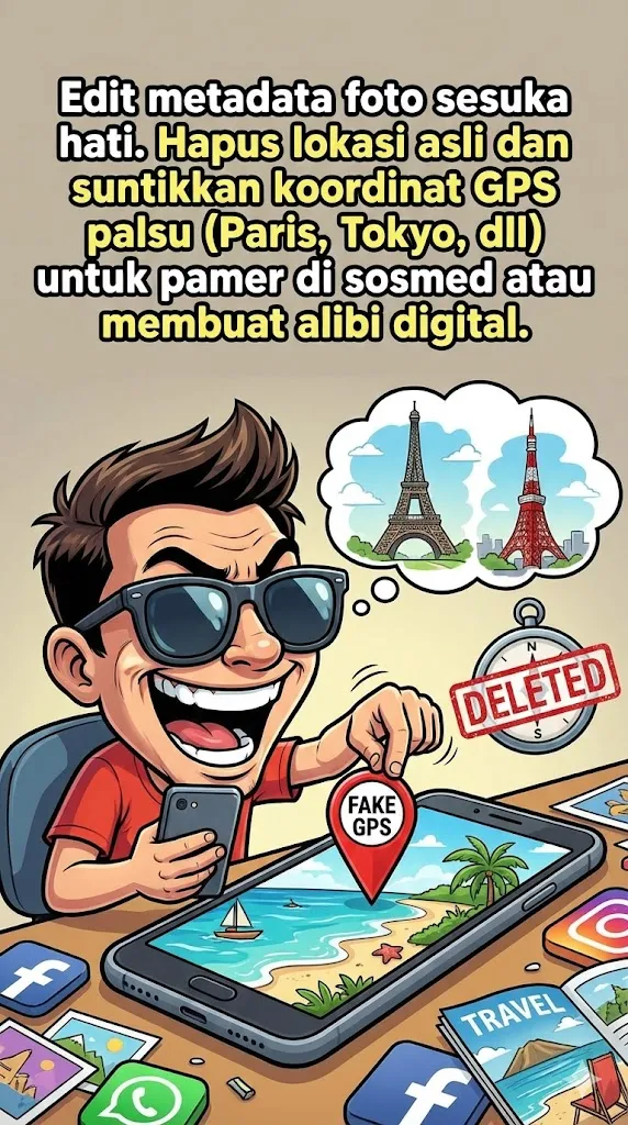 Protect your physical privacy by stripping real EXIF data and injecting fake GPS coordinates into your photos before posting them to public social media platforms.